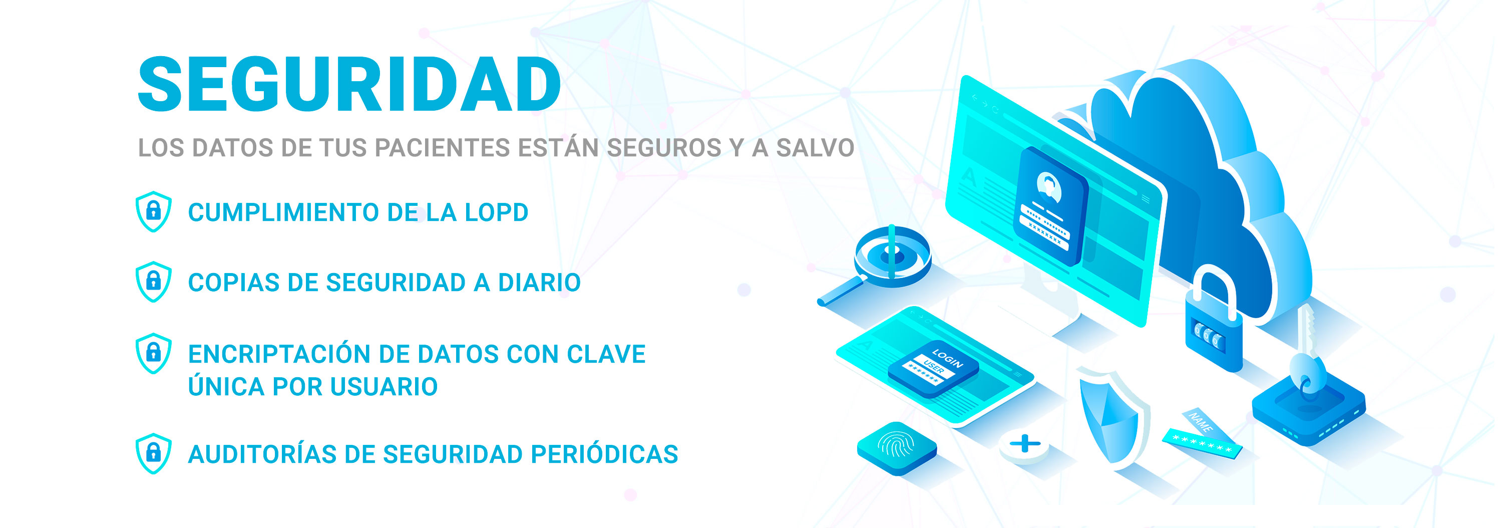 Almacena de manera segura los datos de tus pacientes, con toda la información bien organizada y protegida. De esta manera podrás atenderles de manera eficaz, revisando su caso, su progresión, con datos clasificados y con gráficos.